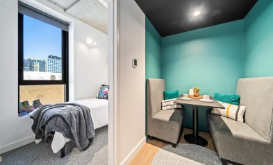 描述: Perth Central是珀斯的高档学生公寓,生活购物交通都很便利;提供多种户型。珀斯公寓楼高39层,是珀斯市中心最高的建筑物之一,Yagan Square和珀斯火车站就在公寓对面,离购物步行街Hay Street步行5分钟,附近超市、餐饮及购物中心林立,生活极为便利。 公寓绝大部分房间都拥有无遮挡的开扬城市景,位于39层的空中室内、室外公共区更可俯瞰伊丽莎白港。其它公共区域包括有首层的咖啡厅、交流中心,一层的联合办公、学习空间、剧场及录音室,二层的健身房、洗衣房、中央厨房、Honesty Kitchen及户外露台。公寓楼有3部高速电梯,所有房间及公共区均覆盖冷暖空调。 如需周末/节假日或其他非工作时间办理入住,请提前联系公寓进行确认。