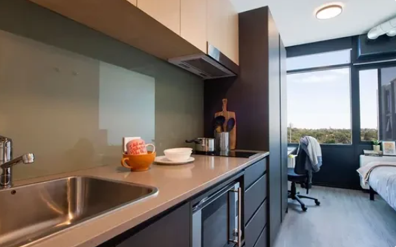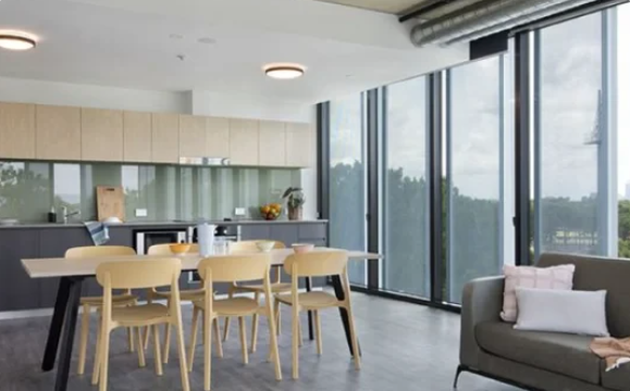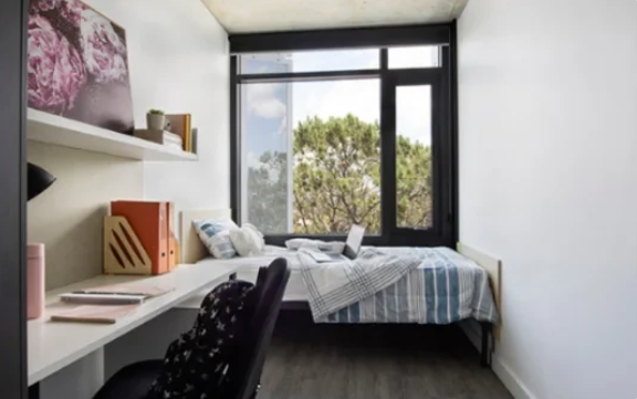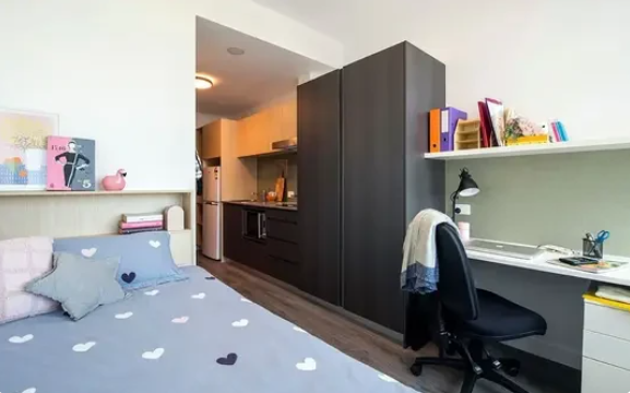 描述: Twin Dolphin Hall是珀斯最新的学生住宿建筑之一,也是距离校园中心最近的选项,位于大学大道旁边。这座全新的10层建筑是科廷大学交流区的一部分,门口就设有一家小型超市。Twin Dolphin Hall还位于科廷体育馆和科廷中心巴士站旁边,位置便利。 这座住所有多层楼,享有科廷珀斯校园的壮丽景色。住宿设有全尺寸商业洗衣房、大型游戏室、封闭音乐室、美术室以及每层都设有的公共休息室,供您与朋友放松或学习。在顶层,您还会发现一个放映室,可用于电影马拉松或观看您喜爱的节目。 Twin Dolphin Hall提供各种房型可供选择,包括带连接浴室的工作室、无障碍工作室以及可容纳两人、四人或六人的多人间。所有房间均配备床、书桌、学习椅和充足的存储空间。 Twin Dolphin Hall设有24/7安保、电子门禁、闭路电视监控,以及提供晚间服务人员,确保您的安全和福祉。