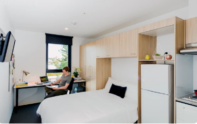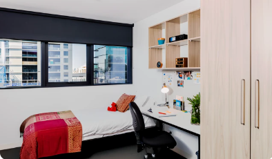 UniLodge South Bank 地理位置十分优越,临近多所高校和布里斯班CBD,乘坐短途公交车即可到达昆士兰大学和格里菲斯大学(Mt Gravatt Nathan校区) 。 公寓为学生提供Studio和合租房型,可以根据需要选择独立Studio、双人间或是宽敞的两室和六室房型。房间内装修现代化,所有房间均带空调,拎包入住,家具齐全,包括床、嵌入式衣柜和书桌椅,电器有冰箱、微波炉和燃气灶等设
