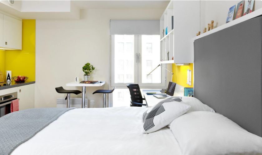 公寓地理位置优越,位于市中心的边缘,公寓配套设施齐全,提供免费健身房、免费游戏机等,出门就是公交站,距约克的大学和著名景点仅几步之遥,周边生活交通便利,公寓提供的房型主要是Ensuite和Studio,Ensuite房型厨房和客厅和舍友一起享用,一般是4-7人共用,Studio房型,除了个人卧室和独立卫浴,还拥有个人的厨房。地理位置位置紧邻主要交通与学习节点,通勤灵活,方便学生日常上课与城市生活步
