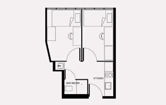 “En-suite”房型一般指带有独立卫浴的单人房间,且厨房和客厅设施需与多人共享。一张床住一人。