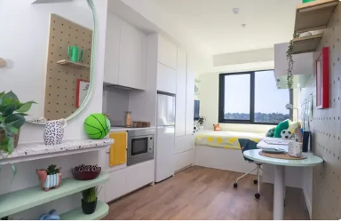 多人卧室指可以入住两人及以上的卧室,住客共享自己的休息和学习空间。卫浴一般是公共卫浴,厨房和客厅设施需多人共享。