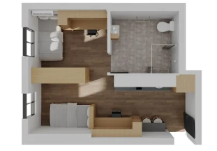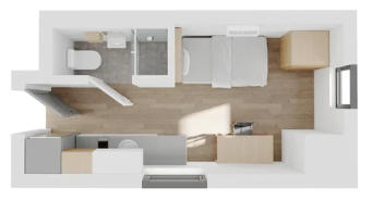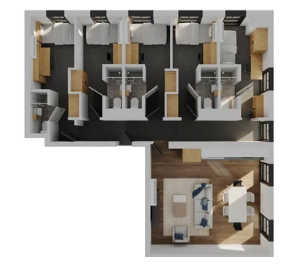 多人卧室指可以入住两人及以上的卧室,住客共享自己的休息和学习空间。卫浴一般是公共卫浴,厨房和客厅设施需多人共享。