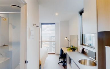 UniLodge Melbourne City是一栋50多层的学生宿舍,位于墨尔本市中心,交通便利。 靠近主要大学和其他高等教育机构。 距离公交车和电车只有数分钟的路程,步行即可到达RMIT。 位置绝佳,周边有很多餐饮,生活方便。 公寓有多种户型可供选择,我们所有的房间都配有床,衣柜/储物柜,书桌和椅子。 您将享受我们100平方米的巨大健身房,各种公共区域以及Sky Lounge的壮丽景色。 【c