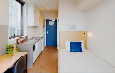 “En-suite”房型一般指带有独立卫浴的单人房间,且厨房和客厅设施需与多人共享。一张床住一人。