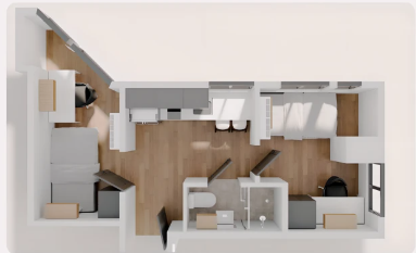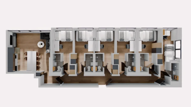 多人卧室指可以入住两人及以上的卧室,住客共享自己的休息和学习空间。卫浴一般是公共卫浴,厨房和客厅设施需多人共享。