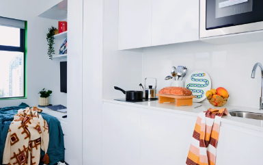 描述: 1、公寓概况Scape Franklin是一座位于墨尔本市中心的全新学生公寓,距离RMIT大学和墨尔本大学仅有几分钟的步行路程,交通便利。该公寓提供豪华、时尚和设施齐全的学生住宿,为学生提供了安全、便利和舒适的生活环境。公寓有多种不同户型,包括单人套间Studio、多人间2/6 Bedroom。每个房间都配备了床、书桌、衣柜和舒适的沙发,让学生在繁忙的学业中可以得到身心的放松和休息。 2、宿舍设施