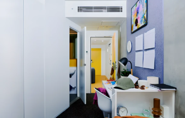 1、公寓概况Scape Franklin是一座位于墨尔本市中心的全新学生公寓,距离RMIT大学和墨尔本大学仅有几分钟的步行路程,交通便利。该公寓提供豪华、时尚和设施齐全的学生住宿,为学生提供了安全、便利和舒适的生活环境。公寓有多种不同户型,包括单人套间Studio、多人间2/6 Bedroom。每个房间都配备了床、书桌、衣柜和舒适的沙发,让学生在繁忙的学业中可以得到身心的放松和休息。 2、宿舍设施