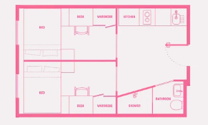 多人卧室指可以入住两人及以上的卧室,住客共享自己的休息和学习空间。卫浴一般是公共卫浴,厨房和客厅设施需多人共享。