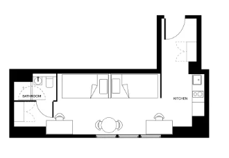 “En-suite”房型一般指带有独立卫浴的单人房间,且厨房和客厅设施需与多人共享。一张床住一人。