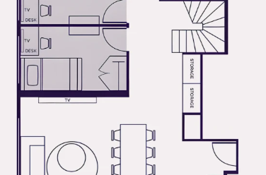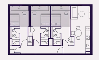 多人卧室指可以入住两人及以上的卧室,住客共享自己的休息和学习空间。卫浴一般是公共卫浴,厨房和客厅设施需多人共享。