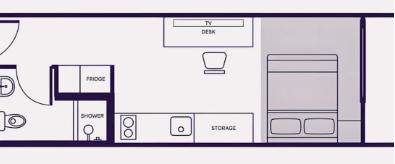 “En-suite”房型一般指带有独立卫浴的单人房间,且厨房和客厅设施需与多人共享。一张床住一人。