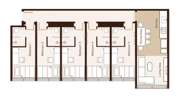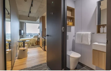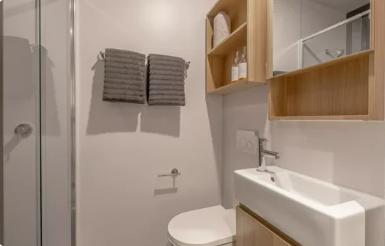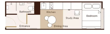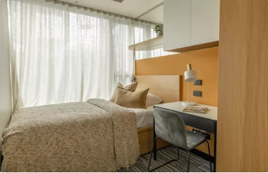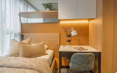 “En-suite”房型一般指带有独立卫浴的单人房间,且厨房和客厅设施需与多人共享。一张床住一人。