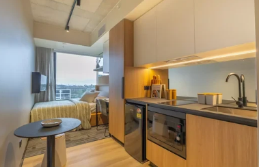 “Studio”指套房,房通常为独立卫生间+独立厨房,类似于国内的开间,卧室和厨房之间没有单独的门隔开。