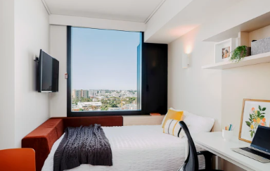 描述: Redfern Student Accommodation是悉尼高级学生公寓,生活购物交通都很便利;提供多种户型。Redfern Student Accommodation共有18层,370多个床位,室内装修精美,有四人间、五人间、六人间和Studio房型可供选择,还可以选择同性别的公寓合租,也可以选择混合住宿。Iglu Redfern公寓的魅力绝不仅仅在于精巧的设计。复古与现代的融合,令你步入公