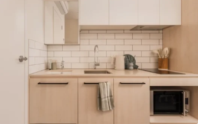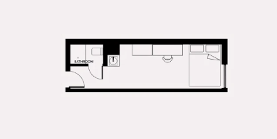 “En-suite”房型一般指带有独立卫浴的单人房间,且厨房和客厅设施需与多人共享。一张床住一人。