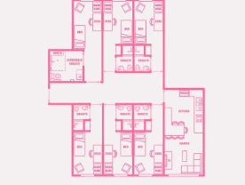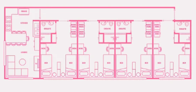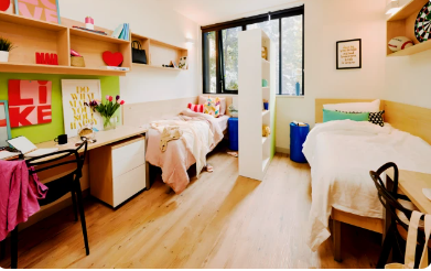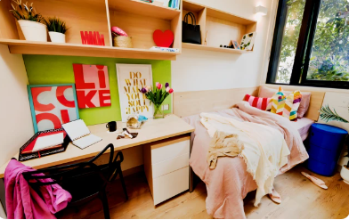 多人卧室指可以入住两人及以上的卧室,住客共享自己的休息和学习空间。卫浴一般是公共卫浴,厨房和客厅设施需多人共享。