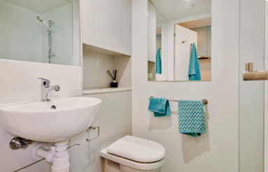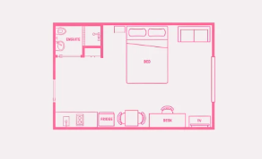 “En-suite”房型一般指带有独立卫浴的单人房间,且厨房和客厅设施需与多人共享。一张床住一人。