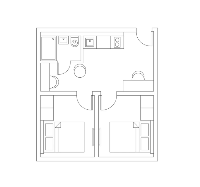 为了满足学生的多样需求,公寓内提供Studio房型,根据不同房间大小、风景、楼层而有所差别,所有房间均配有品位精致的家具装修,床尺寸分别为Lite Studio、Classic Studio、 Classic Plus、Premium Studio、Premium Plus、Accessible Room 和 2 Bedroom,分别配有Small Double 120*190(cm) 或 Dou