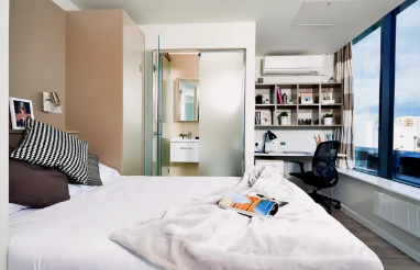 描述 为了满足学生的多样需求,公寓内提供Studio房型,根据不同房间大小、风景、楼层而有所差别,所有房间均配有品位精致的家具装修,床尺寸分别为Lite Studio、Classic Studio、 Classic Plus、Premium Studio、Premium Plus、Accessible Room 和 2 Bedroom,分别配有Small Double 120*190(cm) 或 Double 135*190(cm) 尺寸床,每间房间还配有独卫、装配齐全的厨房、250Mb宽带和WIFI、电视等设施,此外,公寓内还有健身房、公共休闲室、游戏厅等公共设施,定期还会举办各种娱乐活动,并且提供每周一到周五清晨提供免费餐、24小时公寓服务及安保等特色服务。