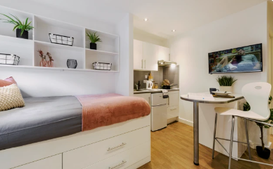 “Studio”指套房,房通常为独立卫生间+独立厨房,类似于国内的开间,卧室和厨房之间没有单独的门隔开。