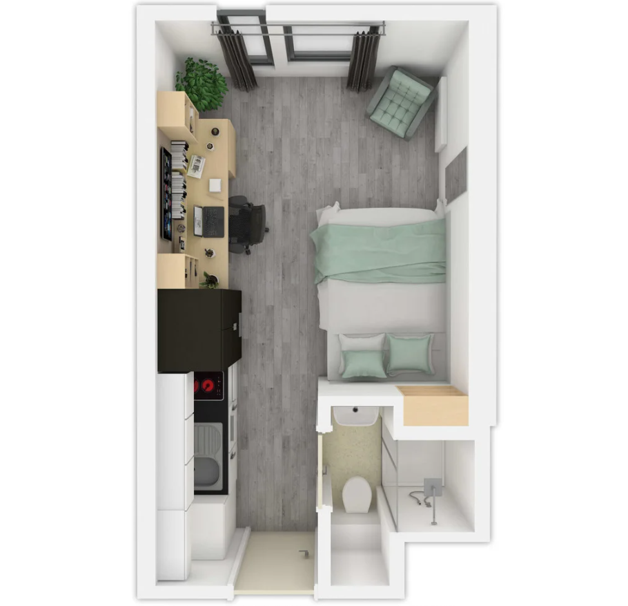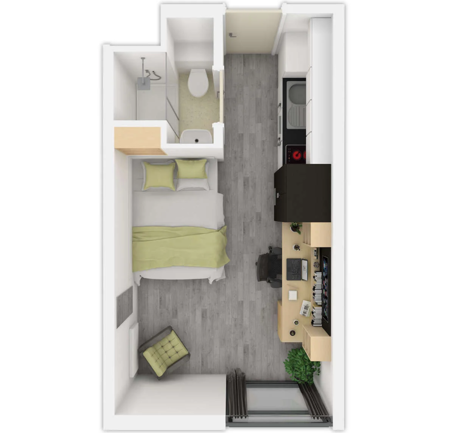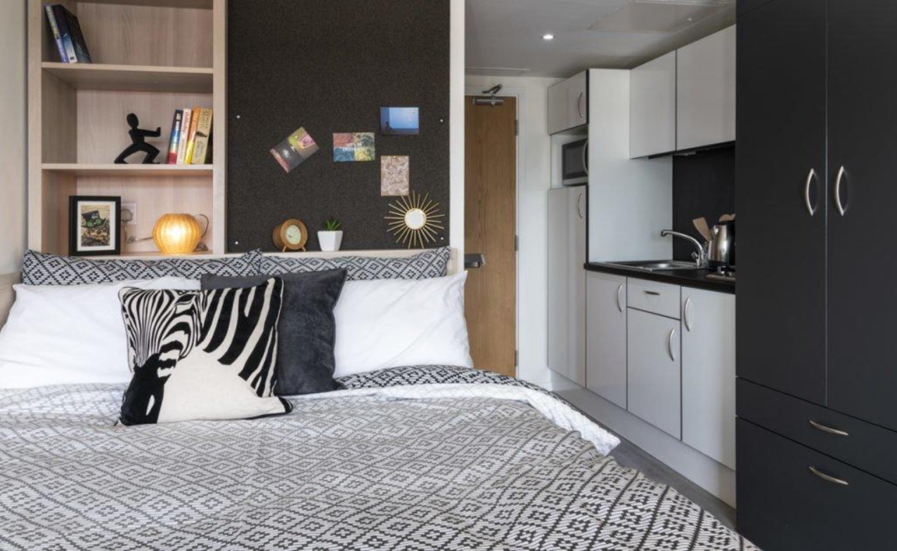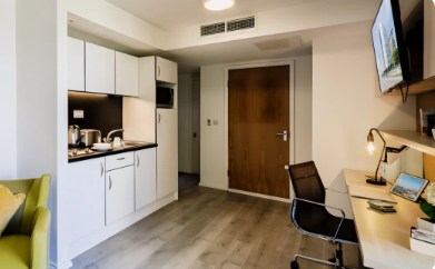 The Lyra公寓一共有209间多种规格的studio房型,每个房间内都配备了独立卫浴、大床和厨房,厨房配有微波炉和冰箱,设施齐全, 部分房间不能开窗 。The Lyra公寓坐落在North Acton地铁站旁边,可以搭乘地铁前往伦敦市中心以及伦敦各个大学,交通非常便利。公寓周边也十分便利,距离伦敦丰富的文化和历史亮点很近,The Lyra公寓是你学习、放松和生活的最佳选择。 1.前台在bloc